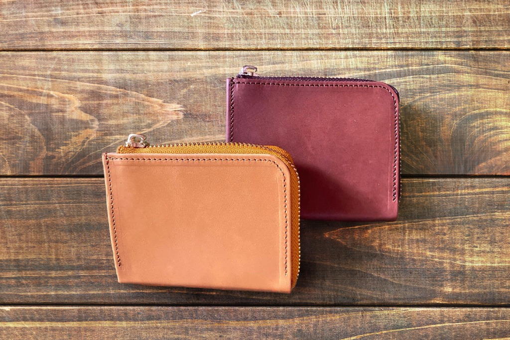 財布の製作も行っています。細かいステッチの縫い付けや型紙の切り出し、レザーの裁断をはじめ、1つ1つの工程にこだわって作っています。